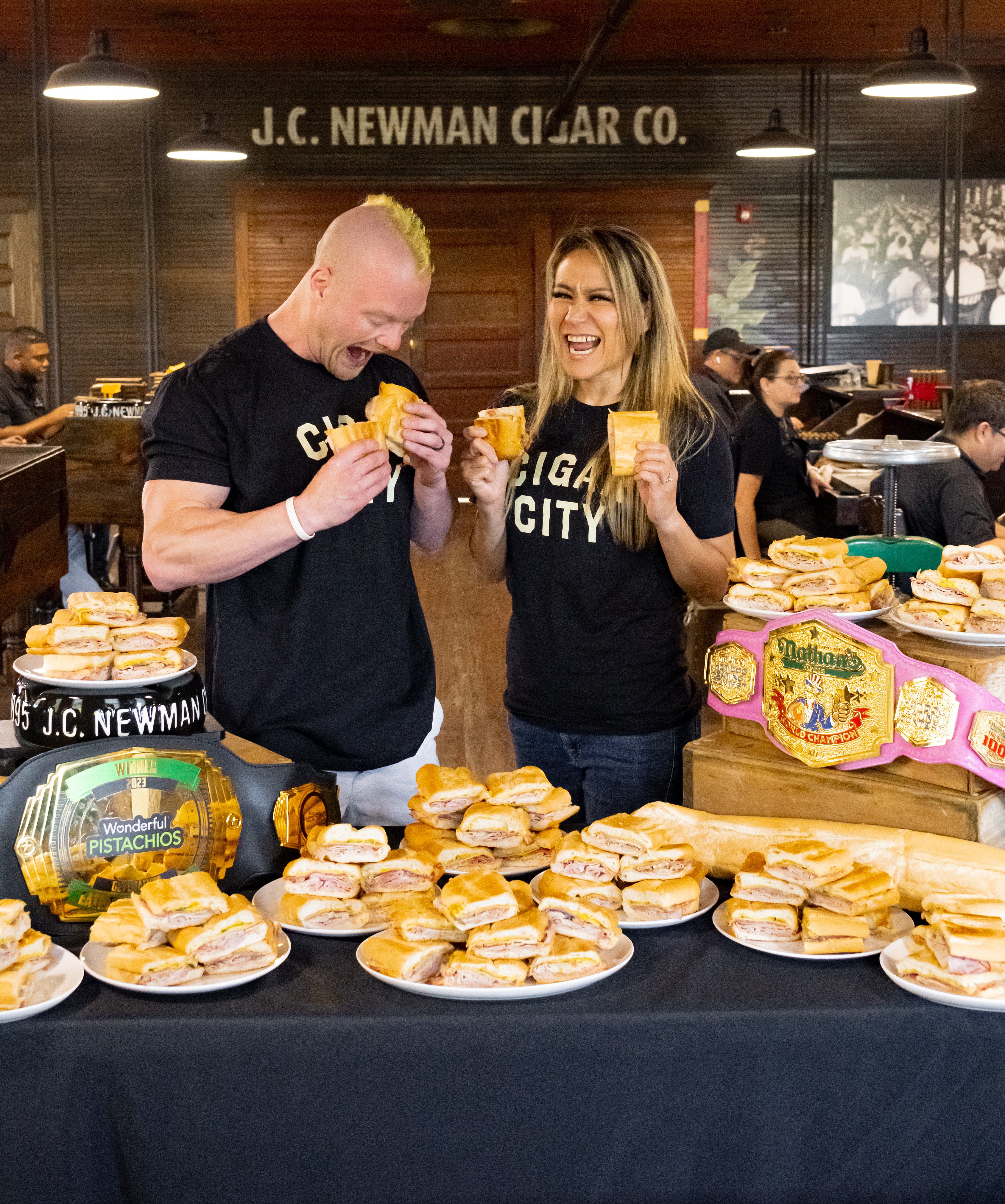 A Cuban sandwich eating competition will also go down featuring two teams led separately by iconic wife-and-husband competitive eaters Miki Sudo and Nick Wehry. Sudo is an 11-time Nathans’ Hot Dog Eating Contest Champion who ate 51 hot dogs in 10 minutes in the 2025 contest. Sudo, however, was not able to defeat hubby Wehry (who famously ate 50 hard-boiled eggs in three minutes five years ago) in J.C. Newman’s competitions in 2025 and 2024.